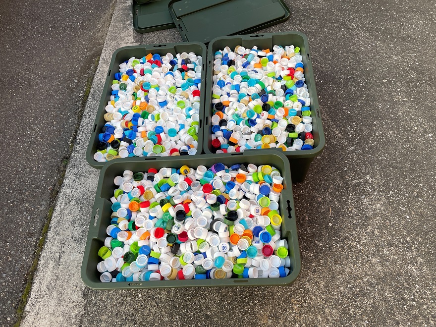 グループ会社すべてに専用回収ボックスを5ヶ所設置し、ペットボトルキャップを回収。