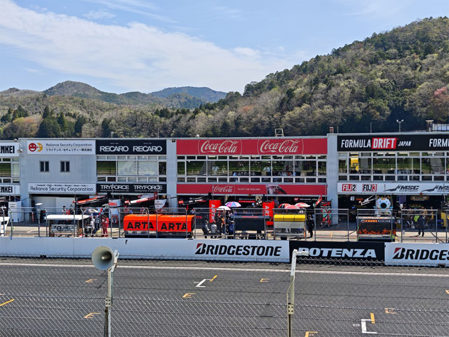 早朝の少し冷える中、会社に集合しバスで向かったのですが、朝早くにもかかわらず現地はすでに大勢の観客で賑わっており、改めて国内最大級のカーレースの熱気を感じました。