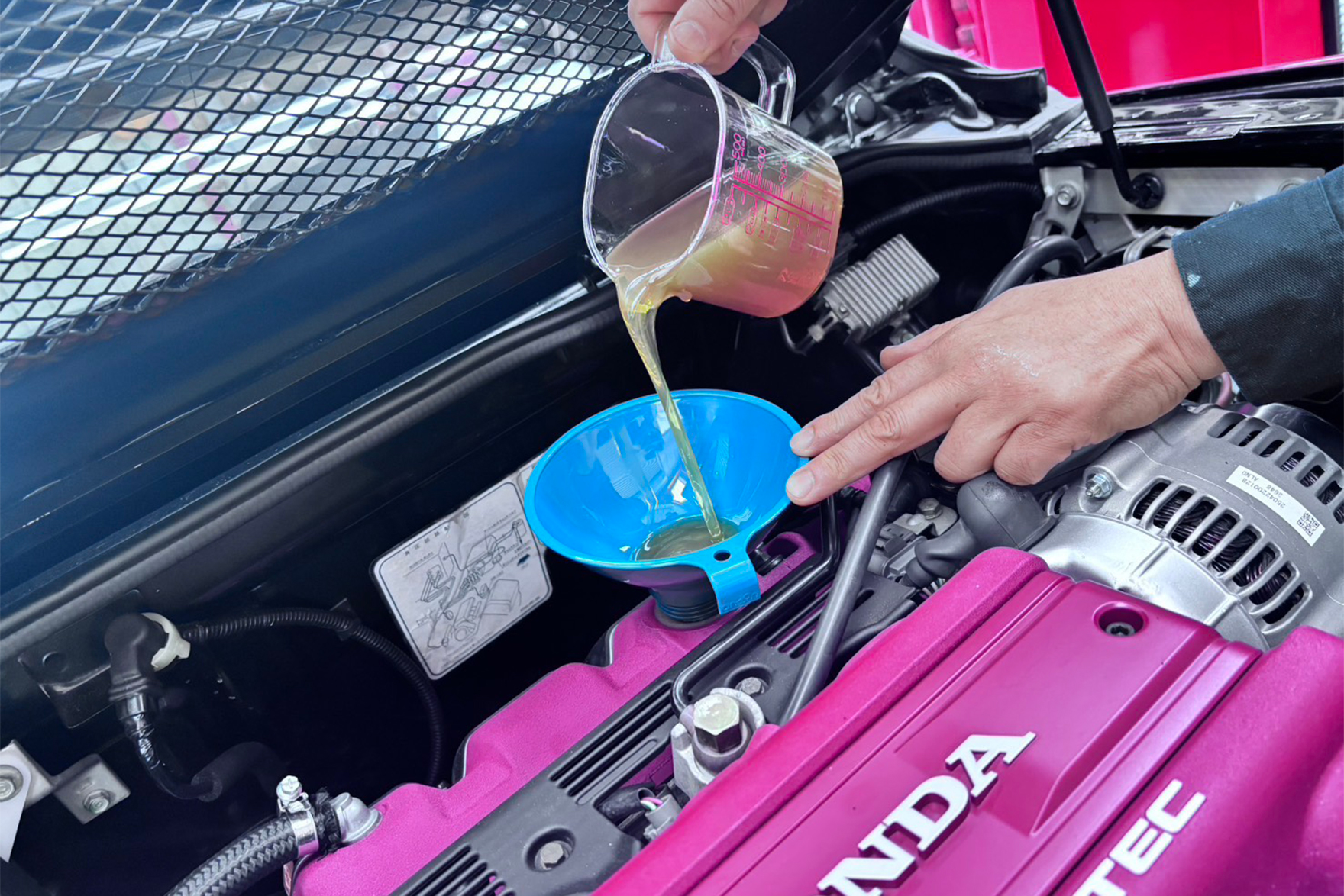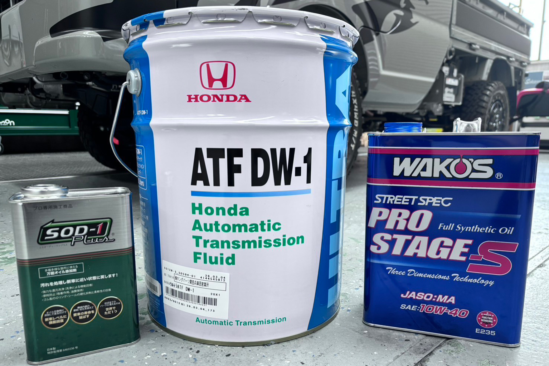 先日のエンパイヤ自動車様の展示会で紹介され、素晴らしいと評判の万能オイル添加剤「SOD-1 Plus」をエンジンオイルとオートマチックオイルに入れてみました。